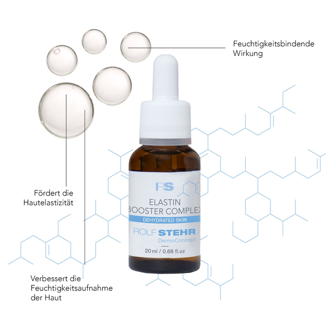 Das ölfreie, hochkonzentrierte Serum auf Basis hydrolysierter Elastine fördert die Hautelastizität und stärkt die Spannkraft der Haut. Dank der innovativen Formulierung mit Milchsäure wird die Feuchtigkeitsaufnahme der Haut effektiv optimiert. Für eine sichtbar straffe und revitalisierte Haut – morgens und/oder abends 3 bis 4 Tropfen auf die gereinigte Haut auftragen.